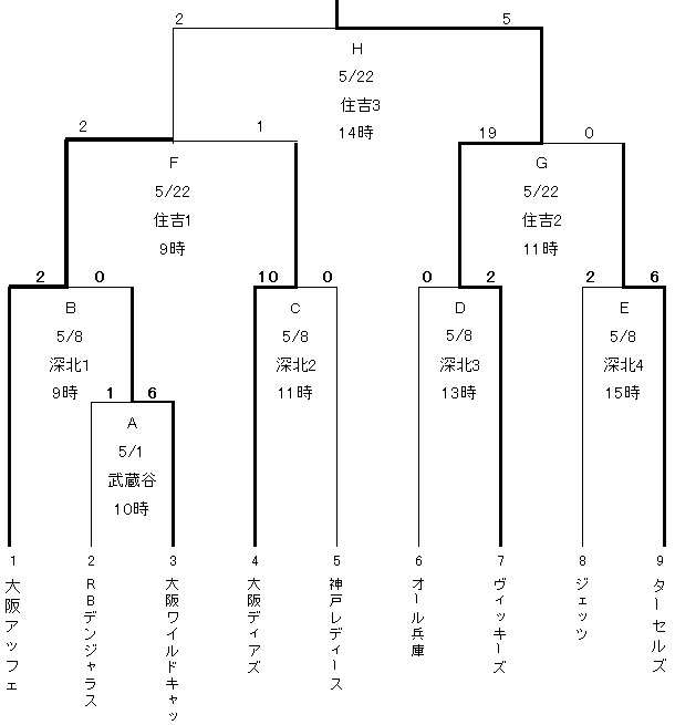 | 大阪ワイルドキャッツ | 0 | 0 | 0 | 0 | 0 | 0 | 0 | 0 |