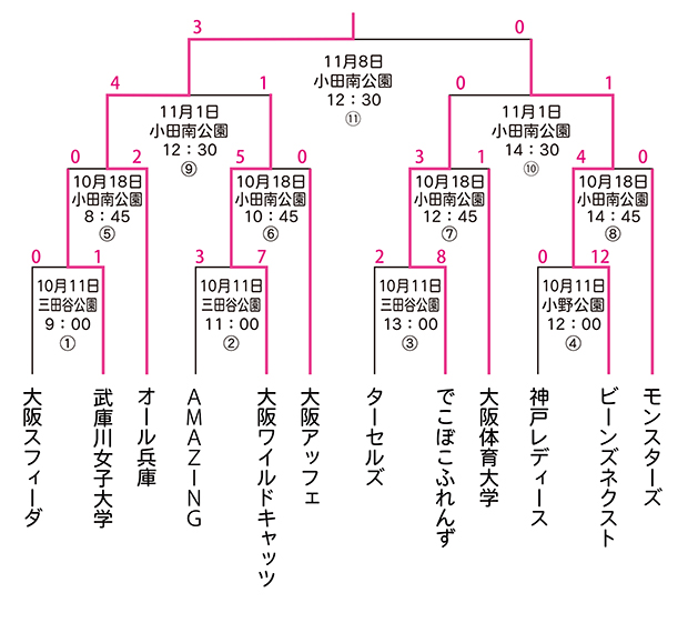 | 大阪ワイルドキャッツ | 0 | 0 | 0 | 0 | 0 | 0 | 1 | 1 |